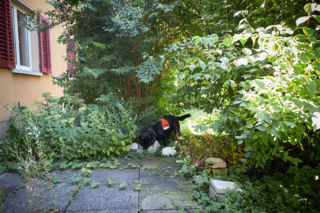Und weiter gehts. Erholt und voller Tatendrang streift Yuma ein weiteres Mal schnüffelnd durch die Gegend. Oft hält sie ihre Nase in die Luft, es ist, als blättere sie in einem Katalog für Gerüche. Siehe da, eine Fährte, die zu einem leeren Nest führt. Yuma setzt sich und bellt. Insgesamt haben die beiden Hunde im Suchgebiet zwei leere Nester, frischen Kot und Geruchsspuren gefunden. «Es kann sein, dass Igel in der Nacht das Gebiet für die Nahrungssuche durchqueren, tagsüber aber nicht auf dem Areal schlafen. Die beiden leeren Nester brauchen sie wahrscheinlich, um sich bei der nächtlichen Suche zwischendurch auszuruhen», sagt Mirella Manser.
