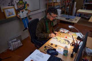 Geschichten erfinden. Das tat Jonas Brühwiler schon immer gerne. Schon früher, in der Primarschule, zeichnete er während des Matheunterrichts statt Formeln lieber Comic-Figuren auf das Papier vor ihm. Er wollte die Welt bereisen, wie Tim und Struppi. Oder Römer («die spinnen!») in den Boden stampfen, wie Asterix und sein Hinkelstein tragender Kumpane. Seine Begeisterung für Bildergeschichten hat er bis heute nicht verloren. «Es ist faszinierend, wie die Bilder eines Comicstrips lebendig werden, wenn wir die Zwischenräume mit unserer Vorstellungskraft füllen», sagte er einmal in einem Interview. Sein Handwerk lernte Brühwiler unter anderem während eines zweijährigen Studiums an der Kunsthochschule St-Luc in Brüssel. Dort, in der Hochburg des Comicstrips, lernte der Krienser alles überFarben, Techniken und das Geschichten-Erzählen. Trotz seiner Ausbildung kann Brühwiler nicht zu hundert Prozent vom Zeichnen, Malen und Schreiben leben. Die Hälfte der Woche arbeitet er als Primarlehrer in Malters. Auch wenn ihm der Lehrerjob gefällt, so träumt er dennoch davon, irgendwann ganz auf die Comics setzen zu können.