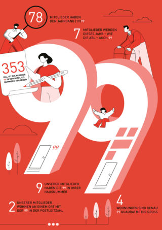 Wir haben genau hingeschaut: Wo lässt sich die Zahl 99 in der abl finden? Sechs Ergebnisse wurden für die magazin-Sonderausgabe illustriert.