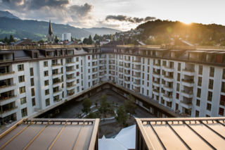 Aus der Vorstandszeit ab 2011 nenne ich das Himmelrich 3, anders als die Tribschenstadt ein Ersatzneubau. Auch das war erstmalig für die abl. Einerseits war ein Neubau zwingend aufgrund der Schieflage der Bauten, die sich nach dem Einbau der Einstellhalle abgesenkt hatten, andererseits waren es geschützte Zeilenbauten mit günstigen Wohnungen. Ich erinnere mich an einen Workshop mit abl, Stadt- und Quartiervertretungen, den ich moderiert habe. Es ging um die Frage der Wohnbedürfnisse und um zusätzliche Angebote an diesem zentralen Ort. Heute ist die Siedlung gebaut und die Ideen sind verwirklicht. Es ist ein lebendiger Ort für generationendurchmischtes Wohnen, ergänzt mit Gemeinschaftsräumen, Dienstleistungen und einem bunten Angebotsmix gewerblicher Nutzung, inklusive Gastronomie im Erdgeschoss. Auch diese Form von Gewerbevermietungen war Neuland für die abl. Im Himmelrich 3 befindet sich auch mein Lieblingsort bei der abl: die Dachterrasse – nicht nur wegen der Rundumsicht, sondern auch wegen der Idee, das Dach zum Begegnungsort für alle Mietenden zu machen, und der Sicht auf das kunterbunte Wohnen und das Treiben im Innenhof, wo die Kinder das Sagen haben.