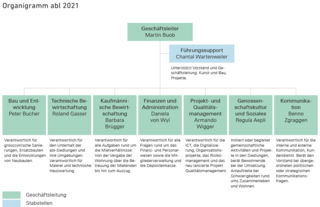 Unsere Webseite abl.ch/team bietet eine Übersicht zu den einzelnen Bereichen und den ihnen angeschlossenen Mitarbeiterinnen und Mitarbeitern.