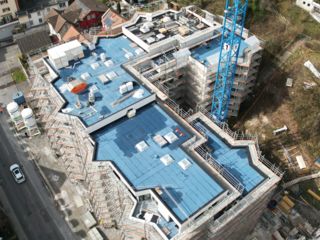 Was aussieht wie der grösste Dachterrassen-Pool der Stadt Luzern, ist in Tat und Wahrheit das Abbild der letzten Arbeiten am Dach des ersten Hauses von drei Häusern an der oberen Bernstrasse. Die Bauarbeiten schreiten rasch voran, die Erstvermietung ist auf Herbst 2023 geplant, der Einzug folgt etappiert ab Frühjahr 2024.