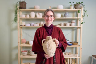 Wer sich mit Melissa Truniger unterhält, der spürt ihre grosse Leidenschaft für das Handwerk und das Material. «Einerseits ist es das Material, das sich in verschiedenen Stadien bearbeiten lässt – von nass über lederhart bis trocken. Bis zum trockenen Zustand kann der Ton sogar recycelt werden. Danach ist er sehr fragil, und erst nach dem Brennen wird er endgültig fest. Andererseits ist der Prozess sehr spannend: das Experimentieren und am Ende ein einzigartiges Objekt in den Händen zu halten.» In ihrer Arbeit verbindet sie nun die Tradition des Handwerks mit ihrem modernen künstlerischen Schaffen. So entstehen neben «klassischen» Vasen oder Tassen eben auch viele kleine und grosse Kunstwerke, wie die Konfettis oder die Amphore im Studio Olá.