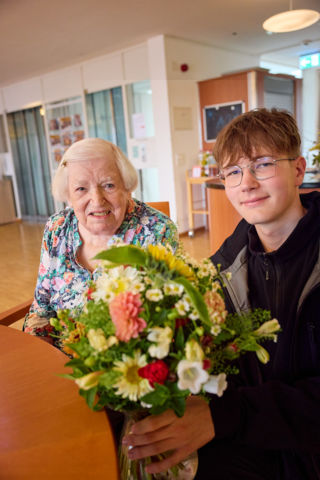 Am 29. Juni 2024 konnte ein weiterer 100. Geburtstag gefeiert werden. Anna Diethelm ist nun ein weiteres Mitglied im Club der 100-Jährigen. Als nachträgliches Geburtstagsgeschenk überreichte Lionel Michel, 17-jährig und KV-Lernender im 1. Lehrjahr, ihr einen kunterbunten Blumenstrauss. Frau Diethelm war überrascht und äusserst dankbar für diese kleine Aufmerksamkeit.