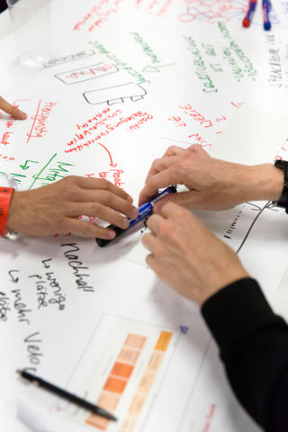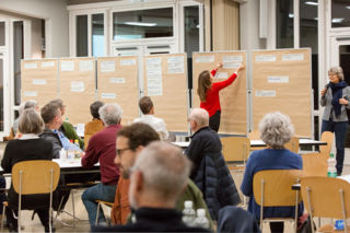 Moderatorin Inger Schjold (rechts aussen) sortiert mit den Teilnehmenden die wichtigsten Anliegen der Ergebniskonferenz.