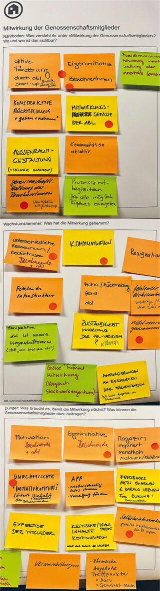 Wissen unsere Mitglieder, welche Mitwirkungsmöglichkeiten sie haben? In den Diskussionen wurde der Wunsch laut, dass die abl mehr kommuniziert. Hier spielt das abl-magazin eine wichtige Rolle. Gewünscht sind Berichte über erfolgreiche Siedlungsinitiativen und engagierte Menschen, die andere inspirieren, eigene Projekte zu starten. Sie zeigen auf, welche Unterstützung die Geschäftsstelle bietet. Auch eine interaktive und transparente Kommunikation ist wichtig. Diese kann die Geschäftsstelle mit verlässlichen Ansprechpartner*innen und mit klaren Rückmeldungen auf Anfragen unterstützen. Zusätzlich ist eine digitale Lösung in Planung, die nicht nur informiert, sondern auch die Vernetzung unter den Bewohnenden erleichtert.