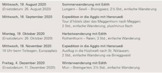 Das monatliche Wanderangebot für die abl-Genossenschafterinnen und -Genossenschafter erlebt einen Neustart. Abwechslungsweise bieten Edith Hausmann und Hansruedi Hitz Wanderungen an. Die Organisation soll möglichst unkompliziert sein. Eine Anmeldung per E-Mail ist erwünscht, damit Edith und Hansruedi wissen, wie viele Teilnehmende mitkommen. Bei den Wanderungen mit Edith steht das Wandern im Vordergrund: Die Wanderausflüge ins Grüne sind ganztägig, unterwegs gibt es eine Picknick-Pause. Die nachmittäglichen Expeditionen in die Agglo mit Hansruedi sind Stadt-Land-Wanderungen mit Start im Zentrum und Ende in der Agglomeration. Unterwegs gibts kurze Infos zu Interessantem am Wegrand. Details folgen mit der jeweiligen Ausschreibung.