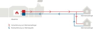 Mit der Nutzung der industriellen Abwärme wird zentral für eine ganze Region Fernwärme produziert. Und so funktionierts (vgl. Grafik): Mittels Abwärme wird Wasser erhitzt und zur neuen ewl-Wärmezentrale in Emmen geleitet. Die Wärmezentrale verteilt das 85 Grad Celsius heisse Wasser über ein gut isoliertes Rohrleitungsnetz und transportiert es unterirdisch zu den Haushalten (Wärmempfänger). Dort wird dem Warmwasser über den Wärmetauscher die Wärme entzogen, ins Heizungsnetz eingespeist und fürs Heizen und Aufbereiten von Warmwasser verwendet. Das auf 55 Grad Celsius «abgekühlte» Wasser wird anschliessend über die «Rücklaufleitung» zur Fernwärmezentrale zurückgeführt. Der Kreislauf beginnt von vorne.
