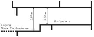 Insgesamt fünf Lokale unterschiedlicher Grössen von rund 90 bis 160 m² sind im Angebot. In der Gewerbefläche am Kopf des Zeilenbaus ist ein Gastrokonzept erwünscht. Die vier weiteren Gewerbeateliers entlang der Claridenstrasse sind räumlich auf zwei Ebenen konzipiert und zeichnen sich durch verschiedene Raumhöhen aus: Ein Raum liegt ebenerdig hin zur Claridenstrasse, der hintere Teil im «Hochparterre» ein Halbgeschoss höher zur Bahnlinie (siehe Schemaschnitt). Bereits vorgesehen sind zwei Kindergärten der Stadt Luzern. Für Lebendigkeit ist auf jeden Fall mal schon vorgesorgt!